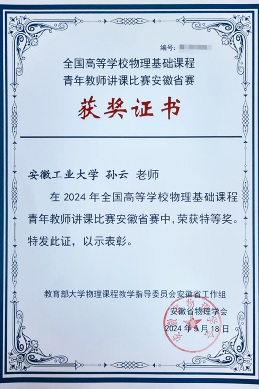 教师孙云凭借出色的表现获特等奖(第一名),并被推荐参加华东赛区复赛。