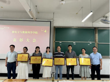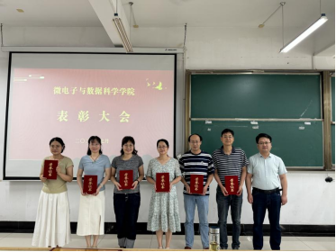 领导依次为受表彰的单位和教工颁奖并合影留念。