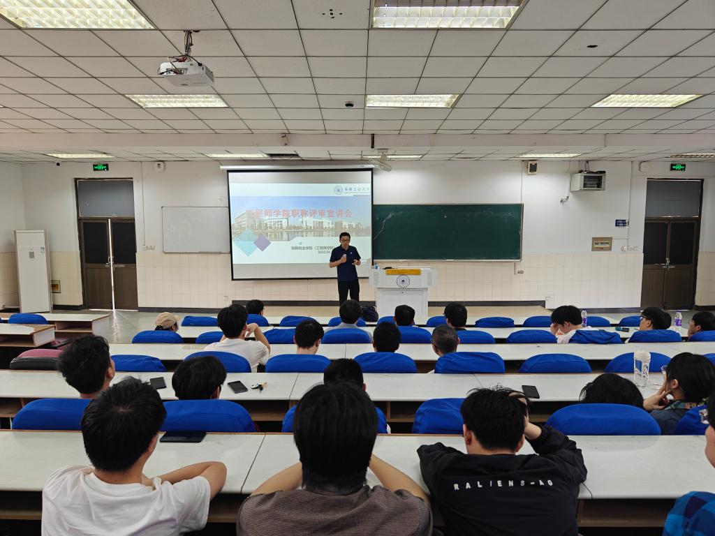职称评审宣讲会,系主任邓小龙、唐绪兵、杨辉及2025届毕业班同学参加会议,会议由毕业班辅导员张佳良主持。