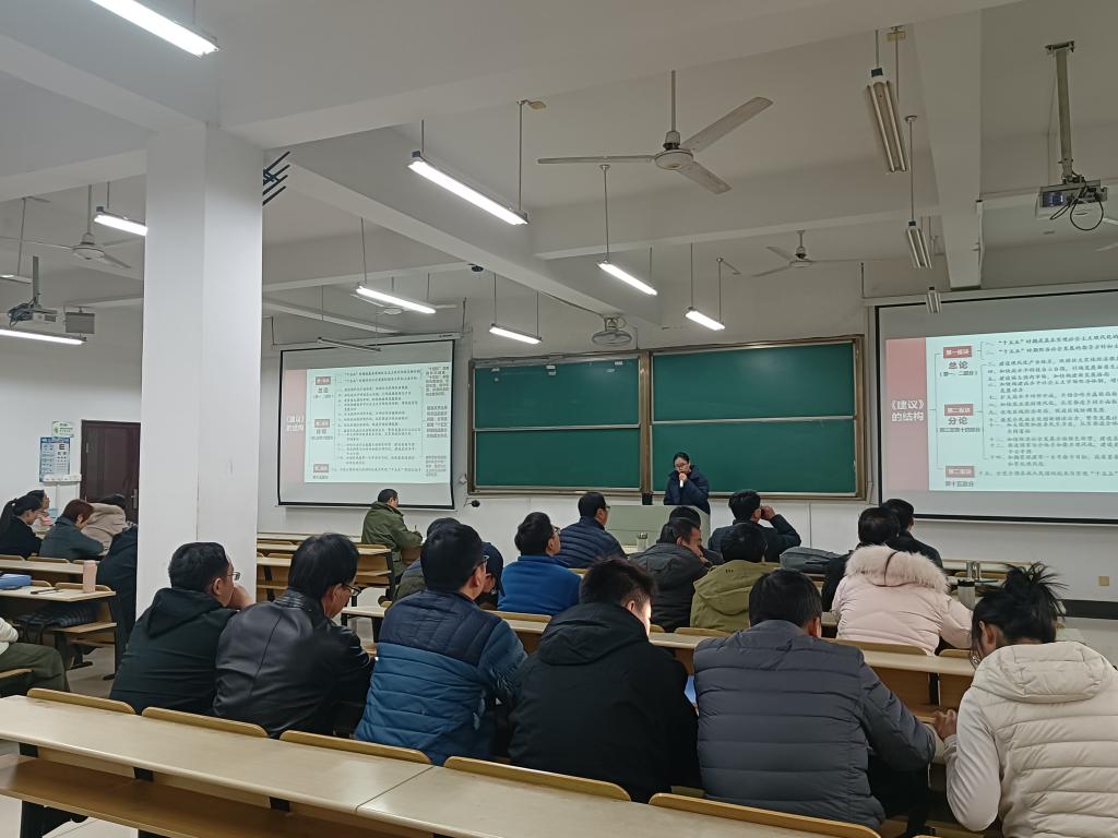 11月27日下午,PG电子官方 在数理楼403室举行党的二十届四中全会精神宣讲报告会,会议邀请了校思政课教师宣讲团成员、马克思主义PG电子官方 教师张志来院作报告。会议由PG电子官方 党委书记汪春胜主持,PG电子官方 全体教职工参加会议。