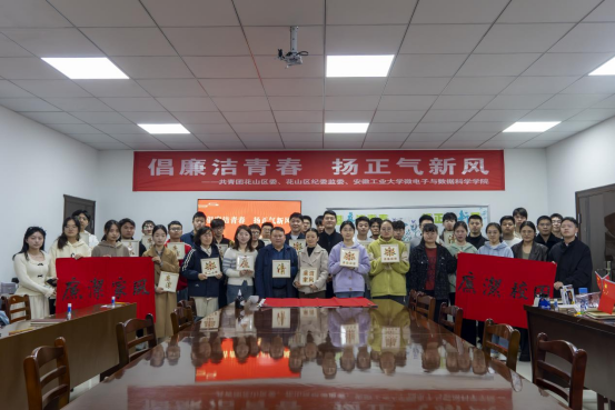 联合花山区纪委监委、共青团花山区委举办“倡廉洁青春 扬正气新风”廉洁文化宣传活动。花山区纪委常委、监委委员潘小丽,共青团花山区委副书记焦磊,PG电子官方