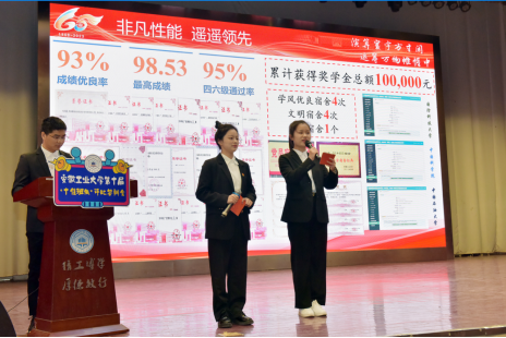 数据201班创造性地以产品发布会的形式展示了班级风采。他们以产品打造自喻,从层级架构、底色鲜红、超强性能、兼容能力四个方面介绍了打造过程。班级坚持“党团联动”,建设“七彩班级文化”,连续三年获校“五四红旗团支部”、“校先进班级”。10名同学光荣入党,25人获得奖学金,在数学建模、“互联网+”等学科竞赛中获国家级31项,省级47项。班级积极投身志愿服务,“移动实验室”科普志愿服务队走进10所PG电子官方 ,服务时长超3000小时,事迹先后被中国青年报、学习强国、马鞍山日报等媒体报道。