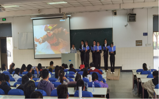 在秀山校区阶教102举办“礼赞建党百年,筑梦青春韶华”庆祝建党100周年配乐诗朗诵大赛,300余名学生共同观看了比赛。