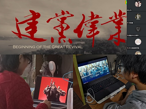 各班级以研讨交流、故事分享会、重温党史等方式,组织班级同学线上观看革命影片,把革命先烈的精神内化于心、外化于行,树立远大理想,立志为民族复兴建功立业。