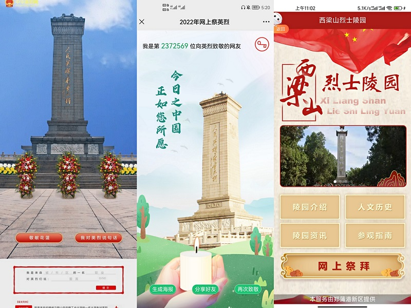 倡议学生通过“云祭祀”的方式缅怀英雄先烈。各班级同学纷纷通过访问中华英烈网、中国文明网、皖事通APP对为国牺牲、为民牺牲的革命英烈进行网上祭扫、敬献鲜花、感言寄语等,深切缅怀先烈们的丰功伟绩,让英烈精神融入血脉、励志青春。