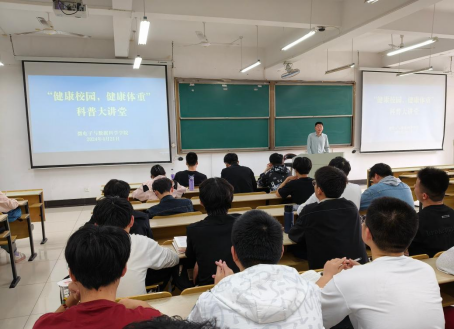 在数理楼403开展“健康校园,健康体重”科普大讲堂,辅导员张佳良主讲,各年级学生代表参加。
