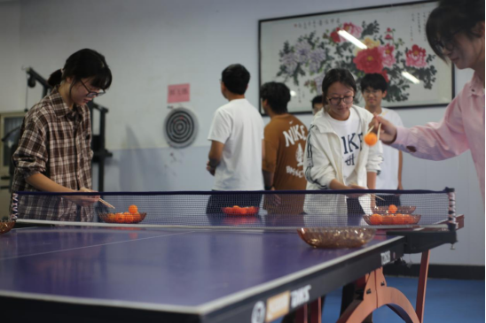 活动精心设计了六个兼具趣味性与协作性的运动项目。通过“运动+心理”的互动模式帮助学生释放压力。通过分组任务,学生学会沟通、信任与包容,如“手拉手单脚跳”游戏需全员默契配合,潜移默化中培养了集体荣誉感和抗挫折能力。游戏还设计融入灵敏度训练,如“乒乓球接力”、“掷飞镖”和“投壶”等环节,既锻炼身体素质,又通过完成目标增强自信心,形成良性循环。活动中,同学们笑声洋溢,积极投入,展现了体育游戏对情绪调节的显著作用,学生在合作与竞争中体验喜悦与成功,有效缓解了压力。