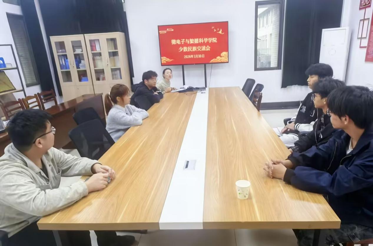 举办少数民族学生交流会,辅导员周文潇主持会议,大一各民族学生齐聚一堂、共话成长。